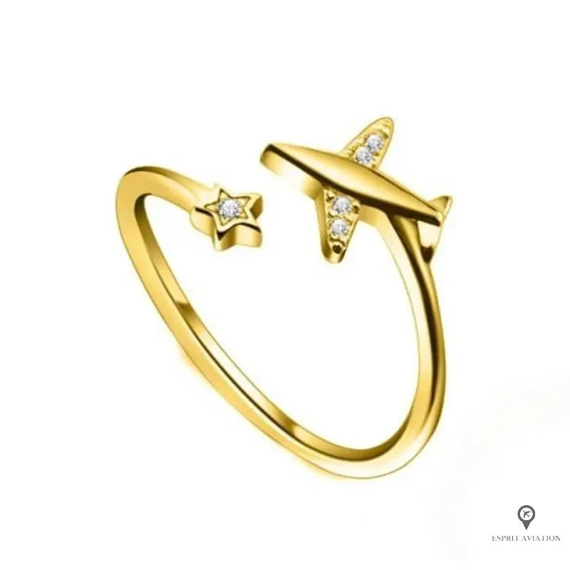 Brillez dans tous les cieux avec la Bague Avion Ouvrée Dorée pour Femme !