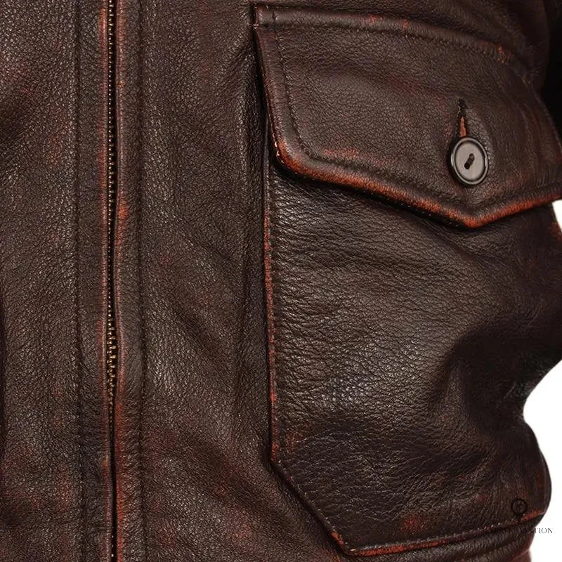 Chic et Intemporel : Blouson Aviateur en Cuir de Vachette Marron pour Hommes