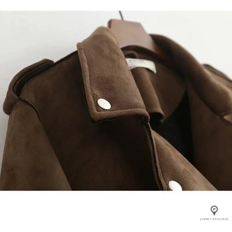 Découvrez la Veste Aviateur Femme en Daim Marron pour un Look à la Fois Chic et Intemporel !